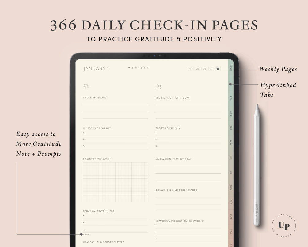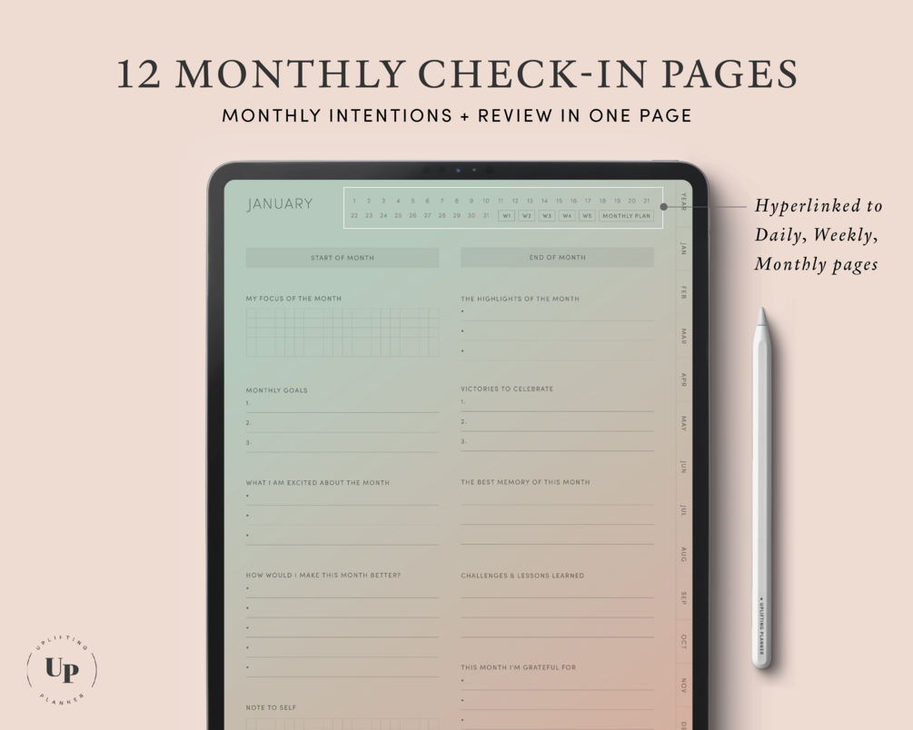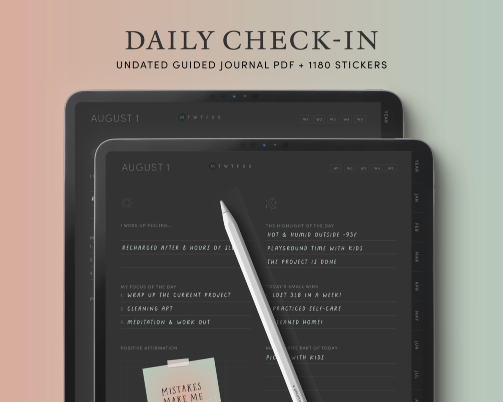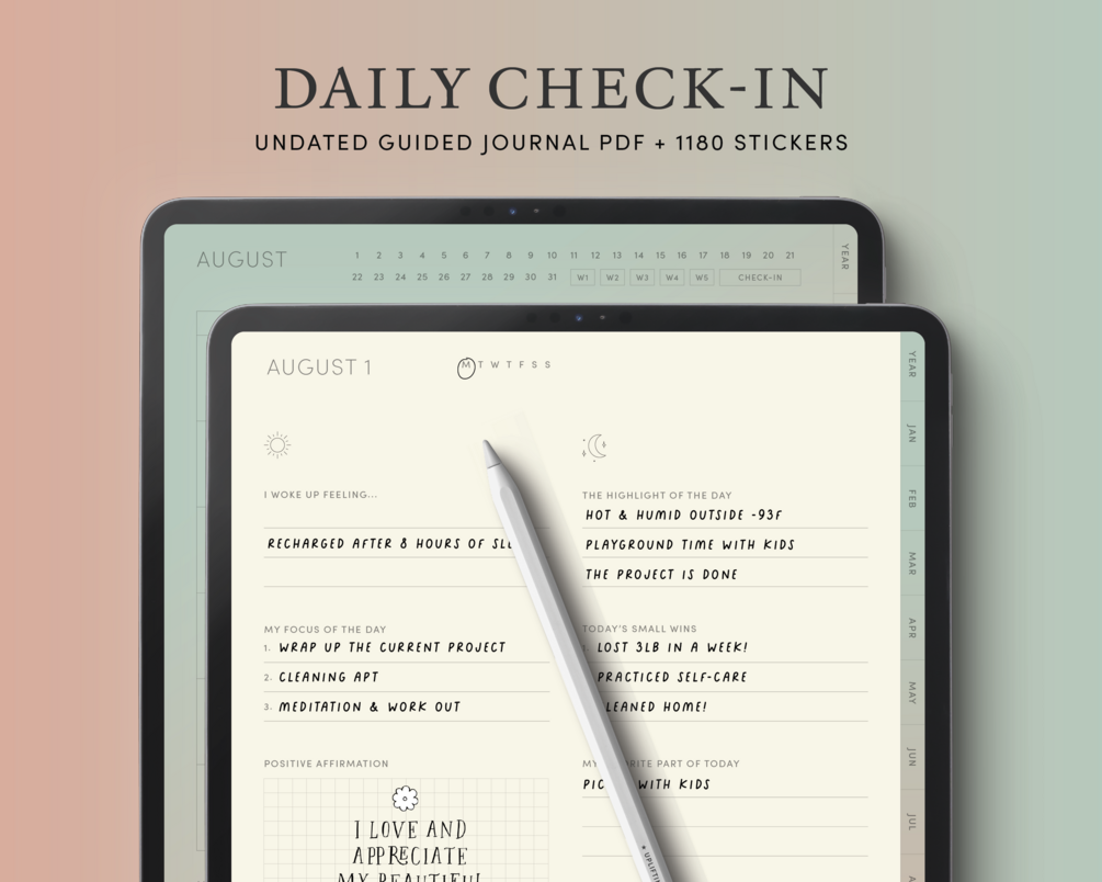 Digital Daily Check In with Undated Monthly Weekly Planner